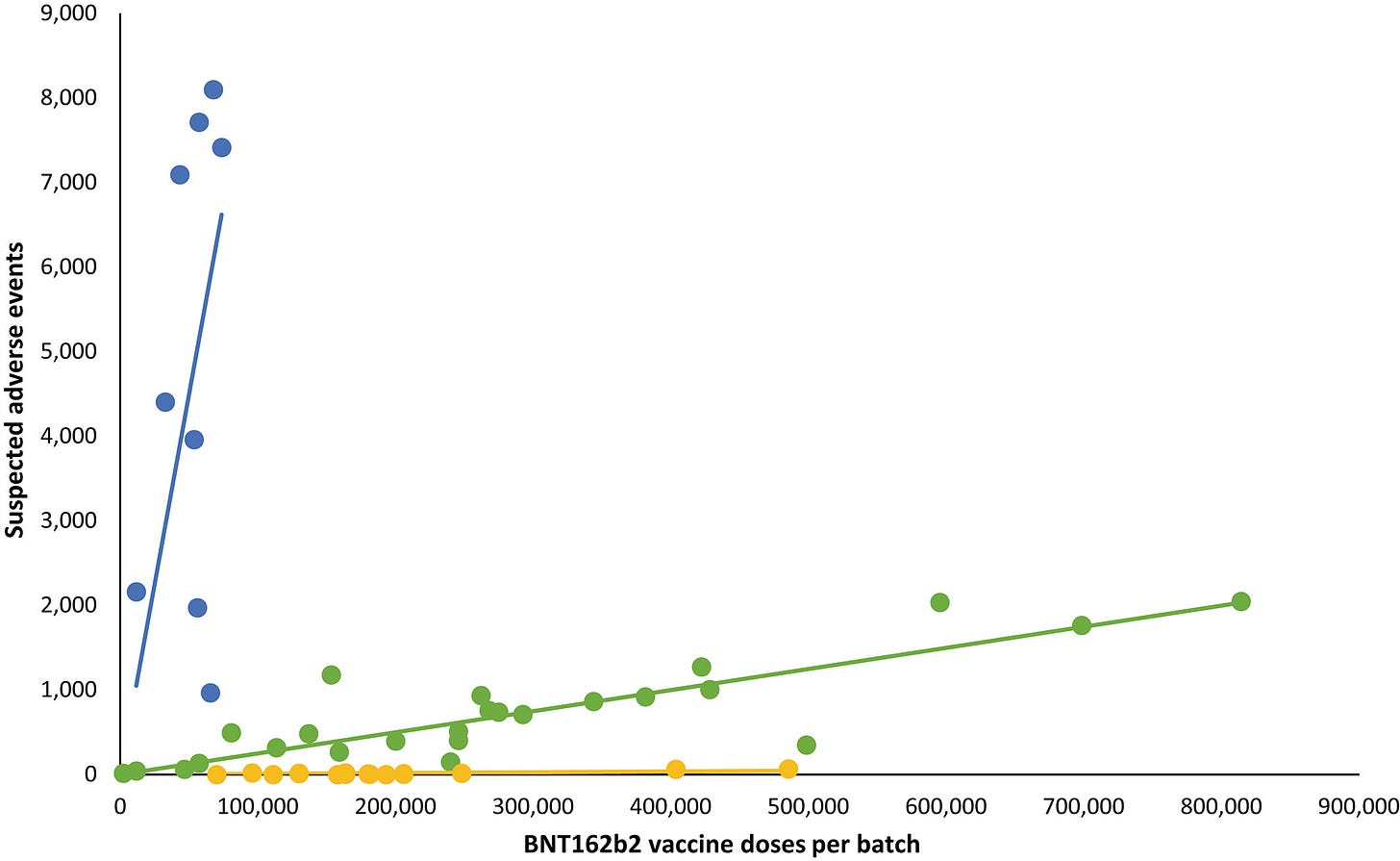 Despite some of the yellow batches having as many as 500,000 doses, there are virtually 0 suspected adverse events.