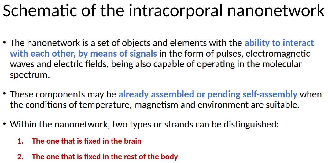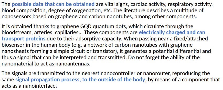 That is, speaking of function and purpose, what is the overarching purpose of the intra-body nanonetwork? If it is to aggregate information, digitize our bodies, and achieve a level of monitoring and control never before seen in human history, then the pieces are coming together.