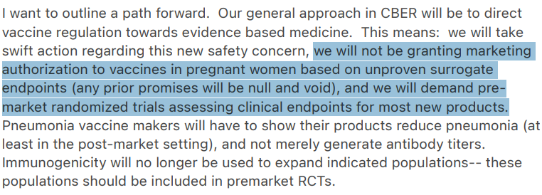That said, he does envision “a path forward,” most notably aimed at protecting pregnant women and demanding crucial, pre-market randomized trials.