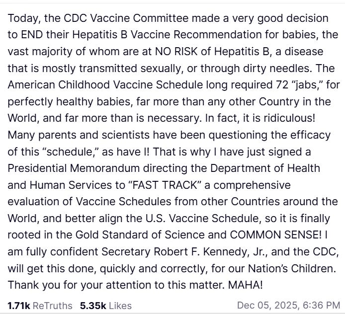 On the same day that ACIP has pro-jabbers losing their minds over the hepatitis B “vaccine,” the President just did something that’s going to make heads explode.