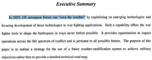 We already know that the United States Air Force has long been interested in “owning the weather in 2025,” and that the current technologies and capabilities go far beyond anything disclosed to the public.