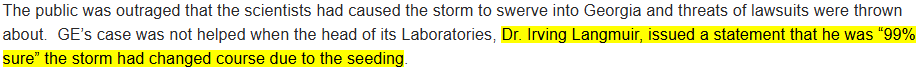 Of course, this NOAA page is quick to point out the difference of opinion between the head of General Electric (GE) Laboratories and the Chief of the Weather Bureau, Dr. Francis Reichelderfer.