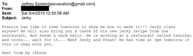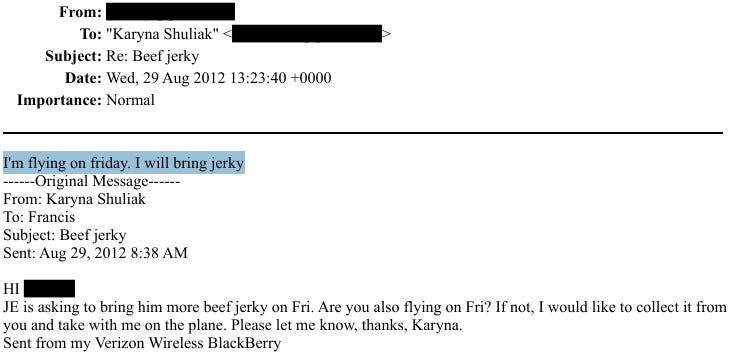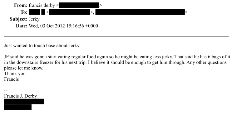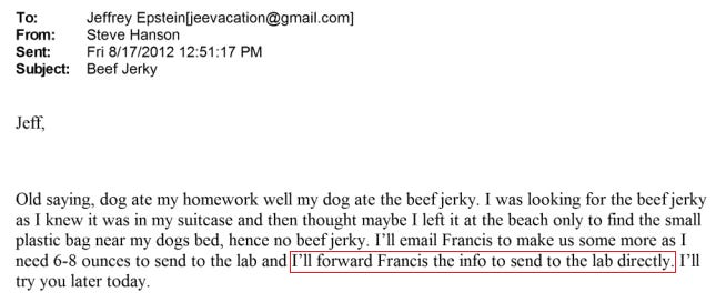 And then you have peculiar discussions of ‘beef jerky’ that needs to be sent “to the lab directly.”