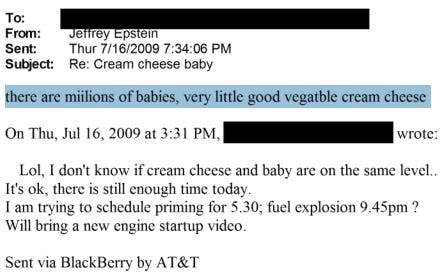 As for the eating of intestines, as unimaginable as that is, unfortunately, it’s not the first time this organ comes up in the Epstein files…