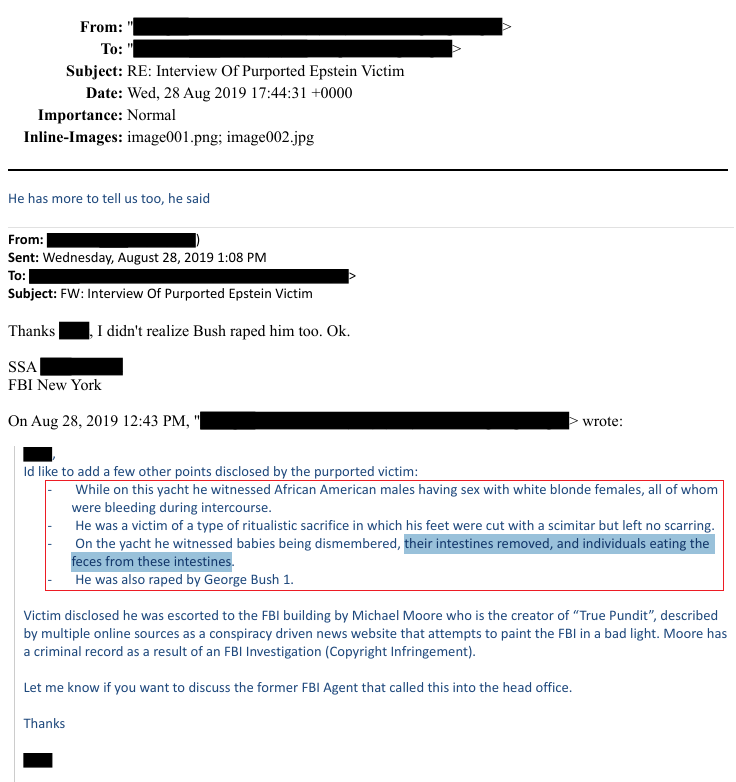 Now, the above exchange doesn’t necessarily mean this particular event occurred. These were the claims of a “purported victim,” implicating numerous powerful people, including former presidents.
