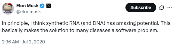 “[Synthetic RNA] makes the solution to many diseases a software problem.”