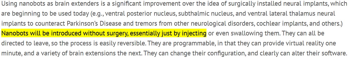 “Nanobots will be introduced without surgery, essentially just by injecting.”